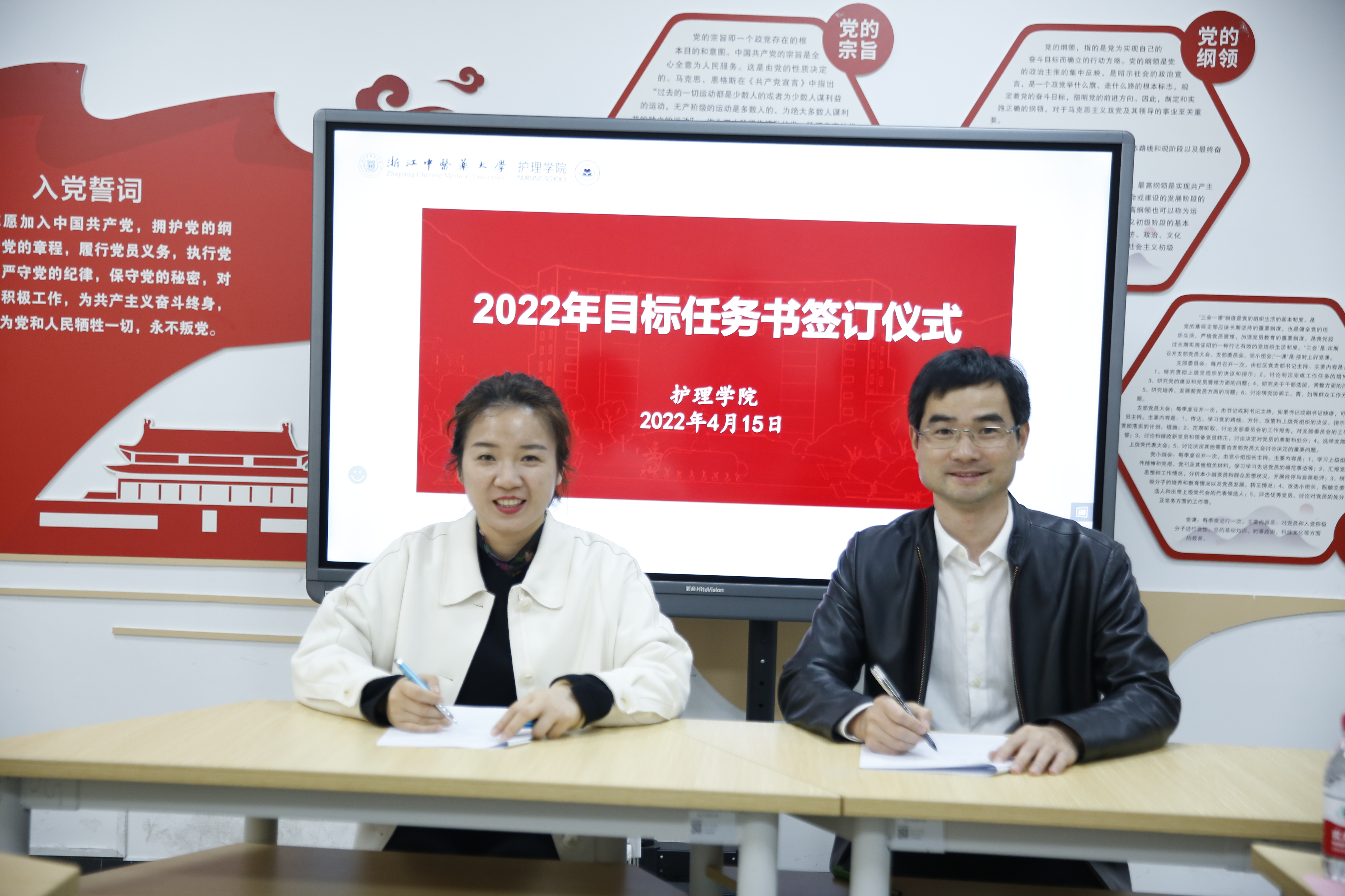 随后,班子领导代表学院与各科室负责人进行了目标任务书的签订。