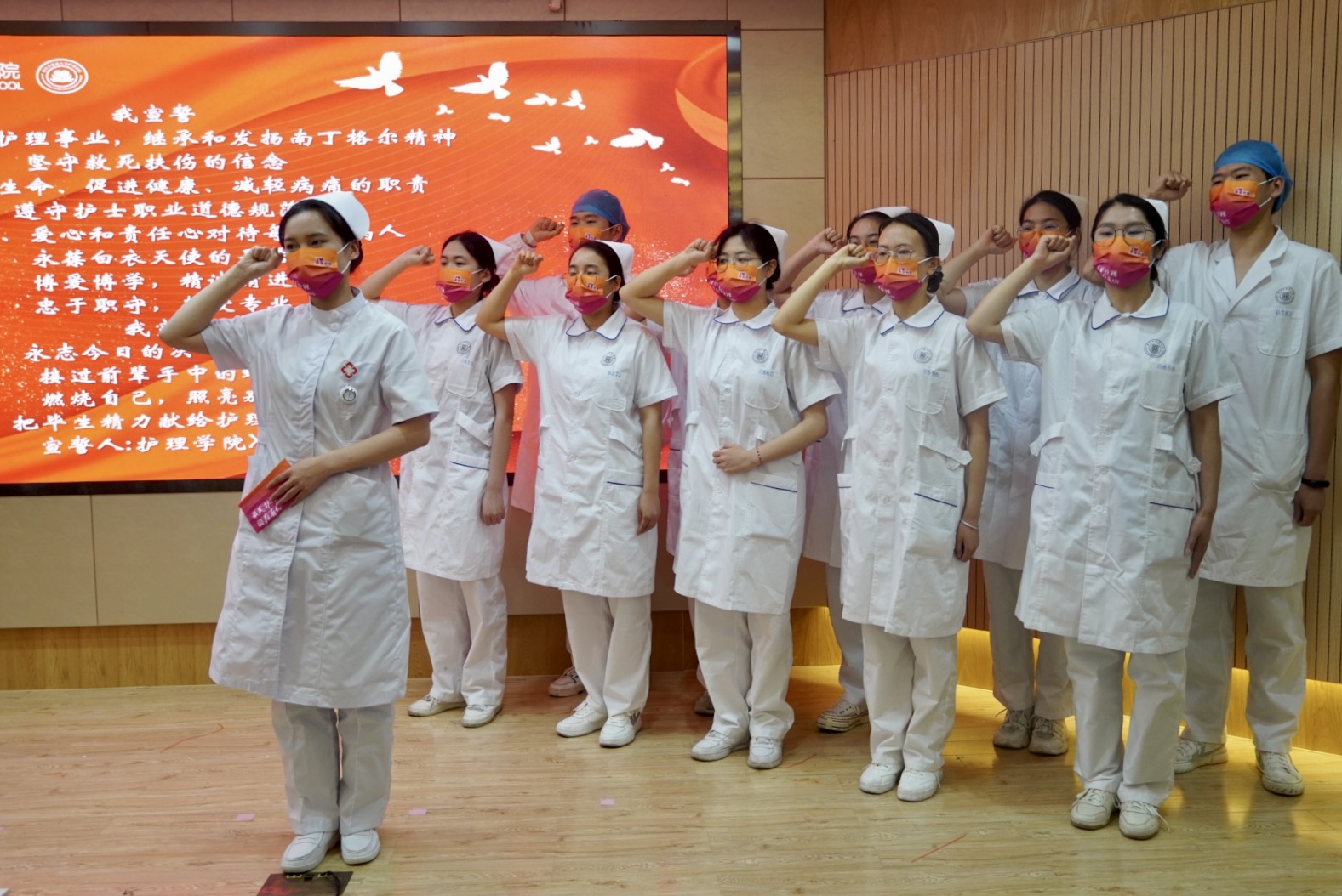 作为南丁格尔的接班人、新时代的最美护理人,站在新的历史方位,要牢固树立“窗口”意识。勇担新使命,展现新作为,作出新贡献。为创建高水平beat365英国官网网站和特色鲜明、守正创新的一流中医药大学增光添彩。相信最美护生必将在“求本远志”的校训和“博爱、博学、精诚、精进”的院训精神引领下,崇德修身、向上向善,成就新时代护理骄傲。
