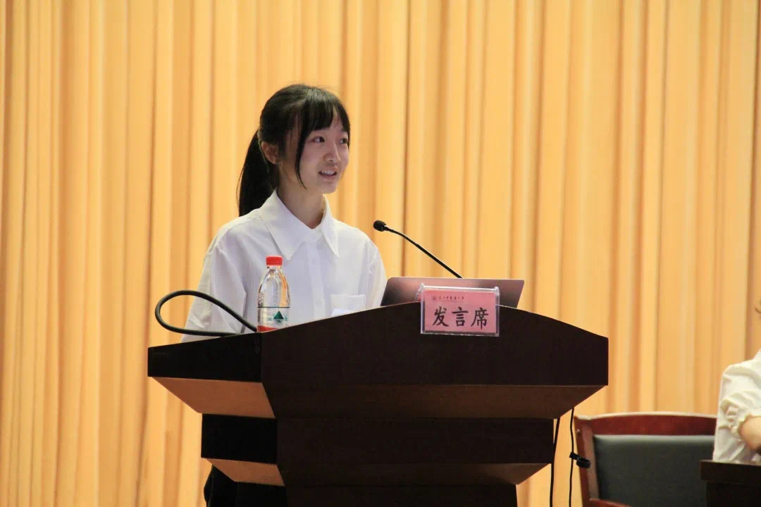 老生代表、2020级护理学李洺宇在大会上作为学长与新生们分享自身经验。他认为大学生活的最大问题就是方向的问题,大学生活就是为将来选择目标的缓冲阶段,新生们要重视自己的学习成绩,从高中思维逃离,留给自己足够的时间多反思,多思考。最后他指出:“不规划的人生很难走得远,尝试去接纳自己,做好规划,扎实成长!”