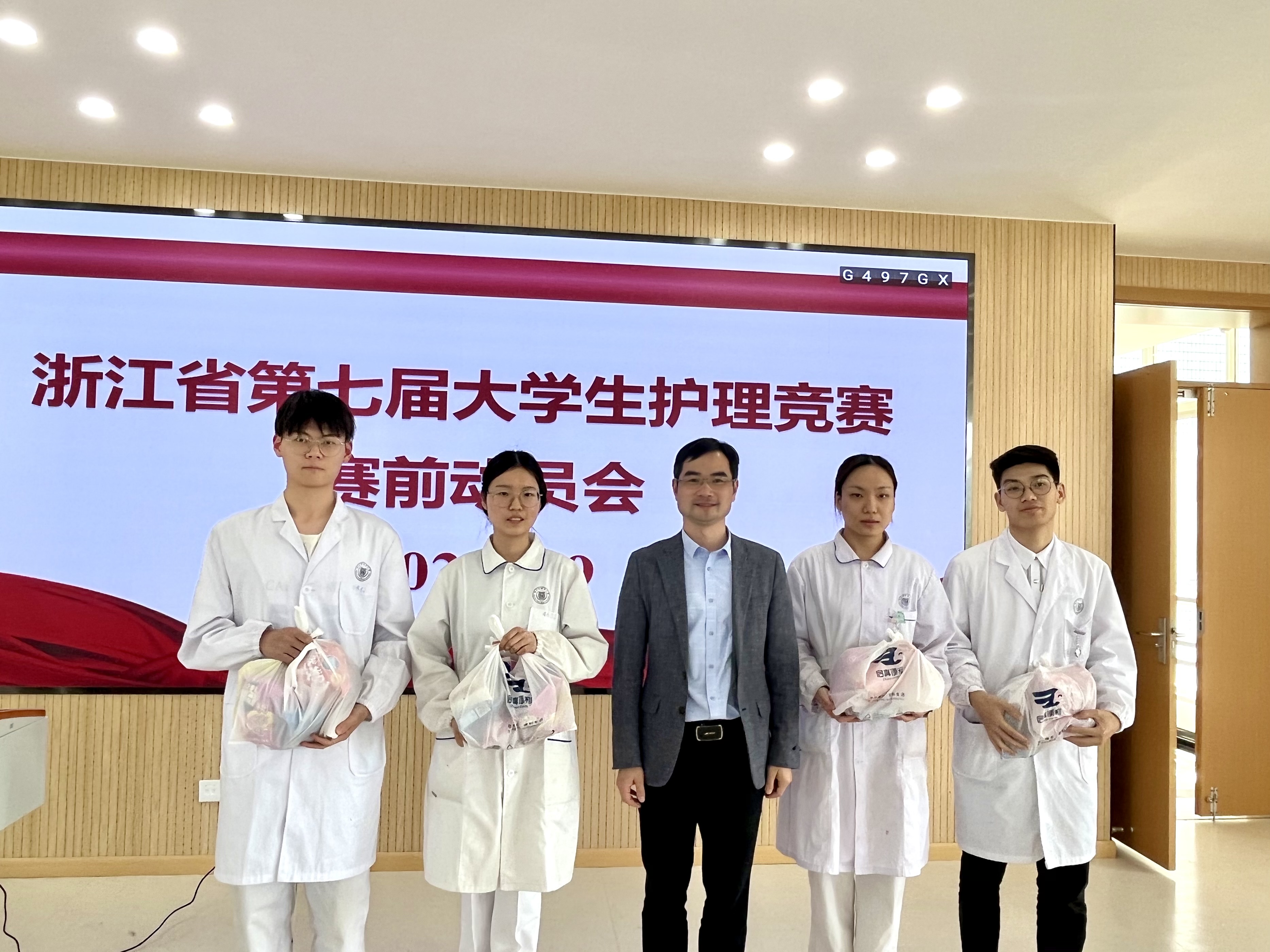 会议最后,学院周云仙副院长、楚婷副院长、林觐民副书记为指导老师和学生送上了精心准备的慰问品,希望全体师生在即将到来的比赛中赛出风格、赛出水平、赛出最美护理的最美姿态。