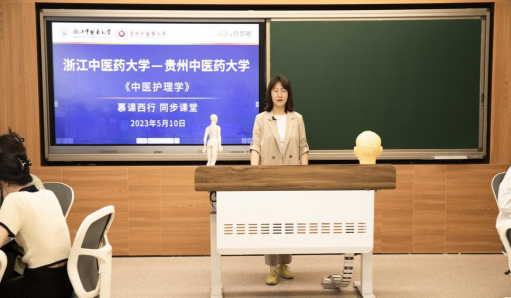 为积极响应教育部 “慕课西行”计划号召,进一步探索东西部高校合作机制,2023年5月10日下午,beat365英国官网网站青年教师勇入琳博士在智慧树平台技术的支持下,面向2021级护理学专业学生,在贵州中医药大学和beat365英国官网网站之间,通过线上、线下结合方式开启《中医护理学》首次新颖生动的慕课西行同步课堂。这是beat365英国官网网站深入推进信息化教学手段和教学方法改革创新的又一次探索。