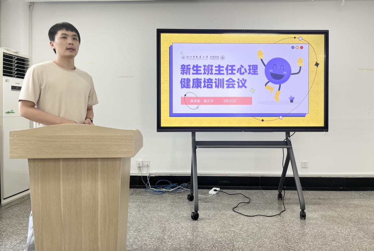 接着,安全保卫处严佑君、辅导员施正宇老师就新生安全防诈骗与心理健康工作两个主题进行介绍,新生开学是诈骗分子活动频繁的阶段,同时面对新的同学,新的群体也是最容易产生心理问题的时期。开学之际各位班主任应及时对新生进行安全教育培训,对有心理问题的学生及时进行疏导。