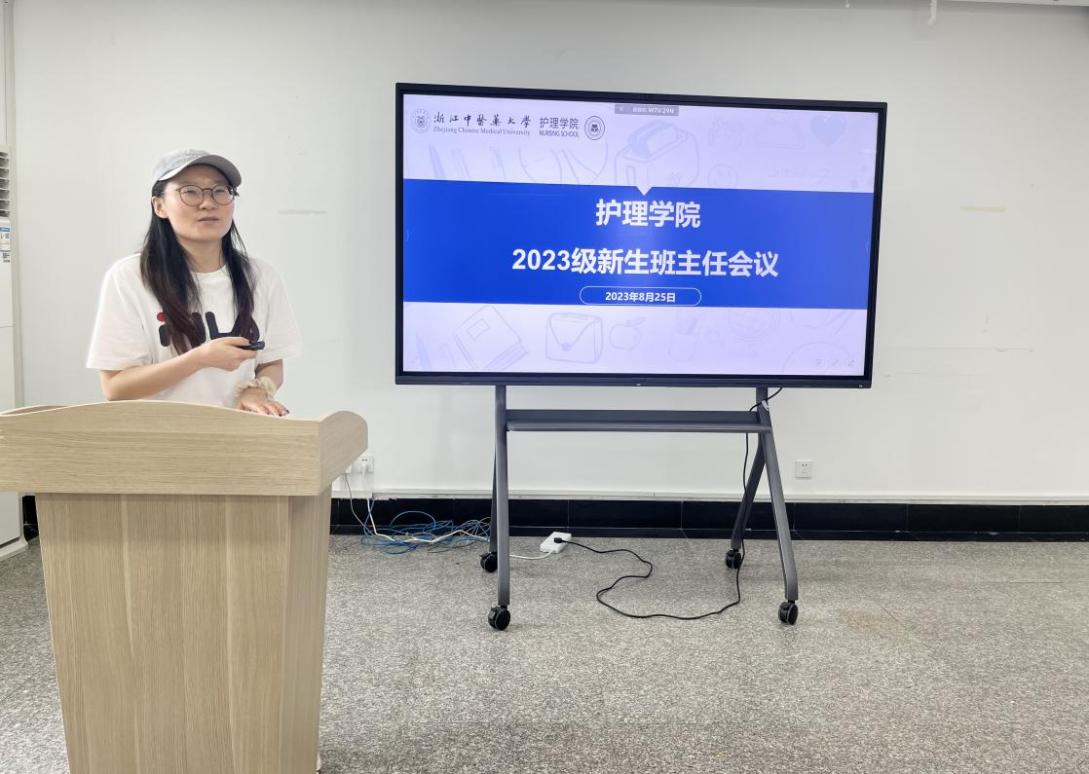首先,王晓梅老师针对2023级新生班级情况、报到准备工作、开学报到流程等方面进行了详细介绍,并强调了迎新期间开展安全教育的重要性,同时也为各位新生班主任做出了班主任日常工作的相关介绍。