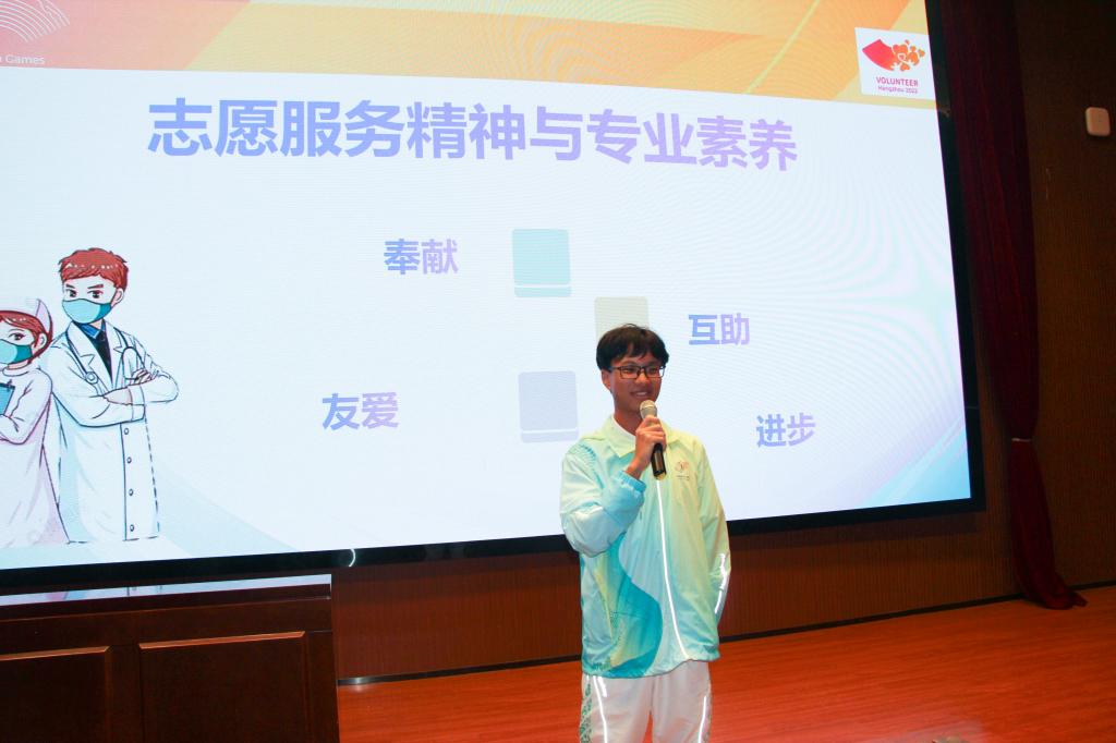 正在服务亚残运会的“小青荷”钟玉良同学分享了如何将志愿服务精神与专业学习相结合,如何通过志愿实践强化个人专业实践力。“亚运服务过程中,我深刻领悟到“奉献、进步、友爱、互助”的志愿服务精神,并将这种精神与自己的专业学习和专业要求融会贯通,有力提升了自己的人文沟通能力和团队合作力”。作为南丁格尔精神的传承者们也同样需要有志愿服务精神的支撑,并将这种精神转化为成长动力,引发了现场同学的共情共鸣。