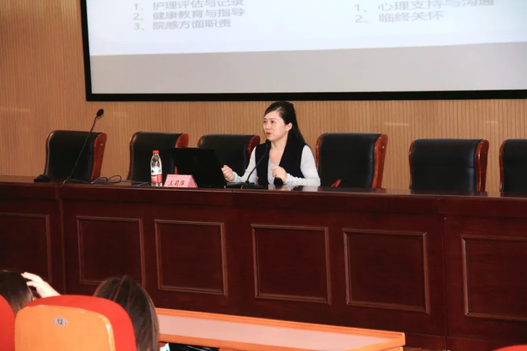 讲座上,王莉萍校友以护理职业的重要性为切入点,从临床医疗的关键支撑、患者人文关怀核心、公共卫生与社会健康担当、医疗资源优化这四大维度,层层递进展开深度阐述。更从技术实操、专业发展路径等多元视角剖析护理人员工作职责,生动展现护理工作的专业性与复杂性,帮助同学们明晰职业方向,勾勒未来职业蓝图。