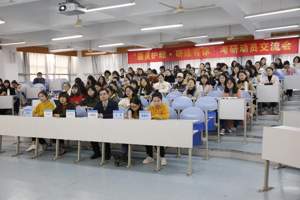 为帮助护生明确考研目标、坚定信念,3月13日下午,beat365英国官网网站组织召开2020届毕业生考研动员交流会。学院副院长沈翠珍、党总支副书记林觐民、学工办主任汤亚玲、护理研究所青年教师宋丹、年级辅导员马良、研究生代表及100余名有考研意向的同学参加了本次动员会。