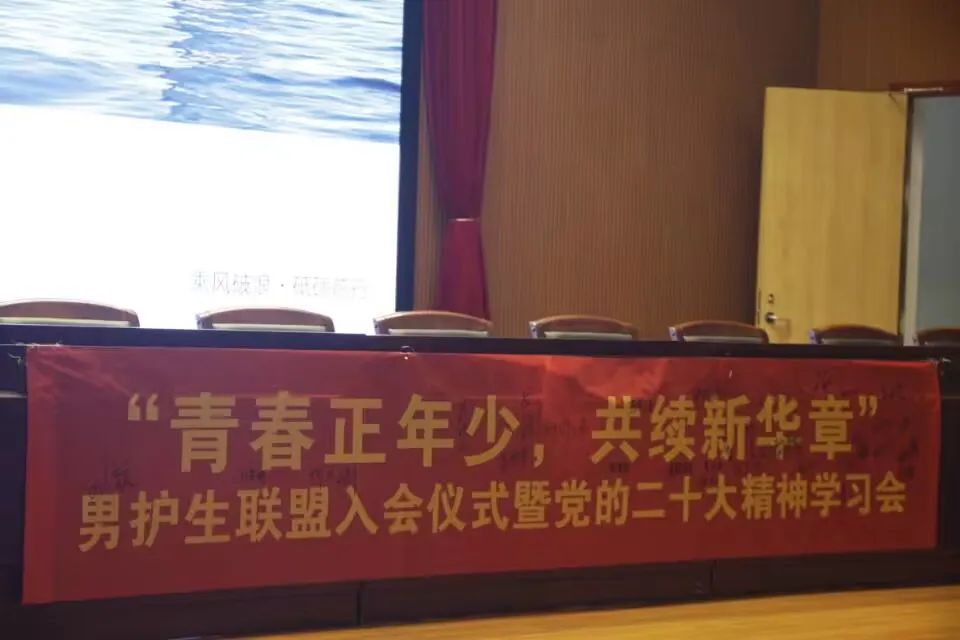 全体男护生联盟成员共同合照留念。至此,男护生联盟入会仪式暨党的二十大精神学习会圆满结束,博观而约取,厚积而薄发,男护生联盟将为健康中国事业添砖加瓦,以对生命的尊重和敬畏,用敬业奉献书写医者仁心。将南丁格尔精神赓续传承、发扬光大,坚持人民至上、生命至上,闻令而动、白衣执甲、逆行出征,为护佑人民群众身体健康和生命安全保驾护航。