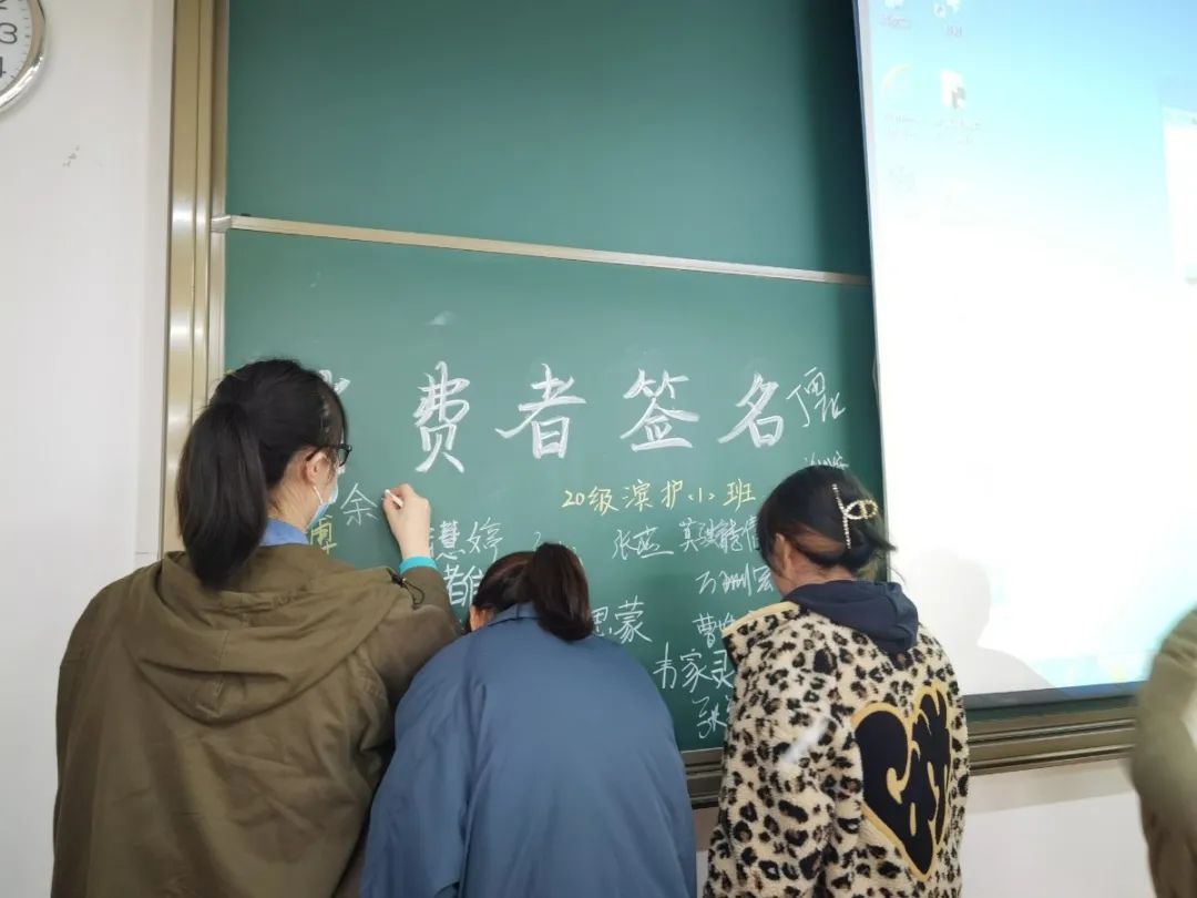 每一位同学离开座位,站起身,跟着班级负责人进行权益宣誓:“人生青春无价,消费维权有约。”并在黑板上郑重地签下了自己的名字。了解权益知识,维护自身权益是我们终身需要学习的事情。
