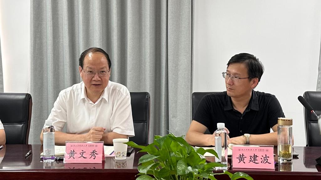首先,黄建波副校长介绍了调研的背景目的和主要内容。随后,何桂娟院长做主题为精准发力、积厚成势,不断推进护理学一流专业建设工作汇报,从专业发展概况、专业建设成效、认证工作进度和认证工作举措四个方面详细介绍了护理专业建设情况。