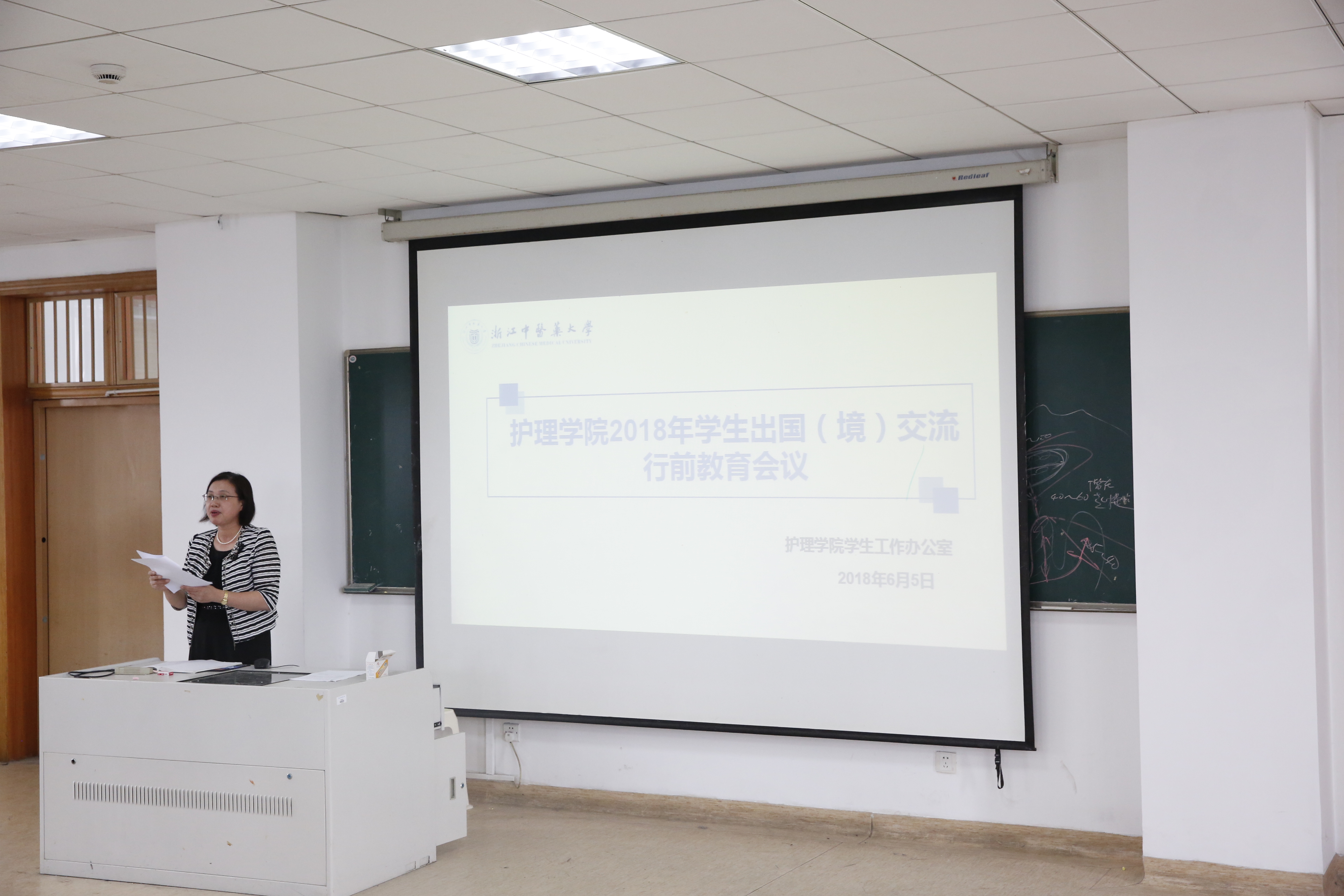 林觐民副书记对在外交流期间安全事宜作出五点强调:1、注意人身、财产安全,保管好护照、通行证并留存复印件备用。2、交流期间,一切行动听指挥,严禁擅自行动,实行严格的请示汇报制度。3、学员应在带队老师带领下每日交流学习心得,每周形成文字材料,行程结束返校后向同学们汇报交流成果。4、不参加任何政治、宗教活动,不购买、阅读非法反动读物。5、不发布游玩照片到朋友圈或QQ动态。最后,他向与会同学介绍了2018年全校对外交流的资助情况,希望同学们心存感恩,把握机遇,克服在外生活学习种种不利因素,努力成为“护理骄傲”。