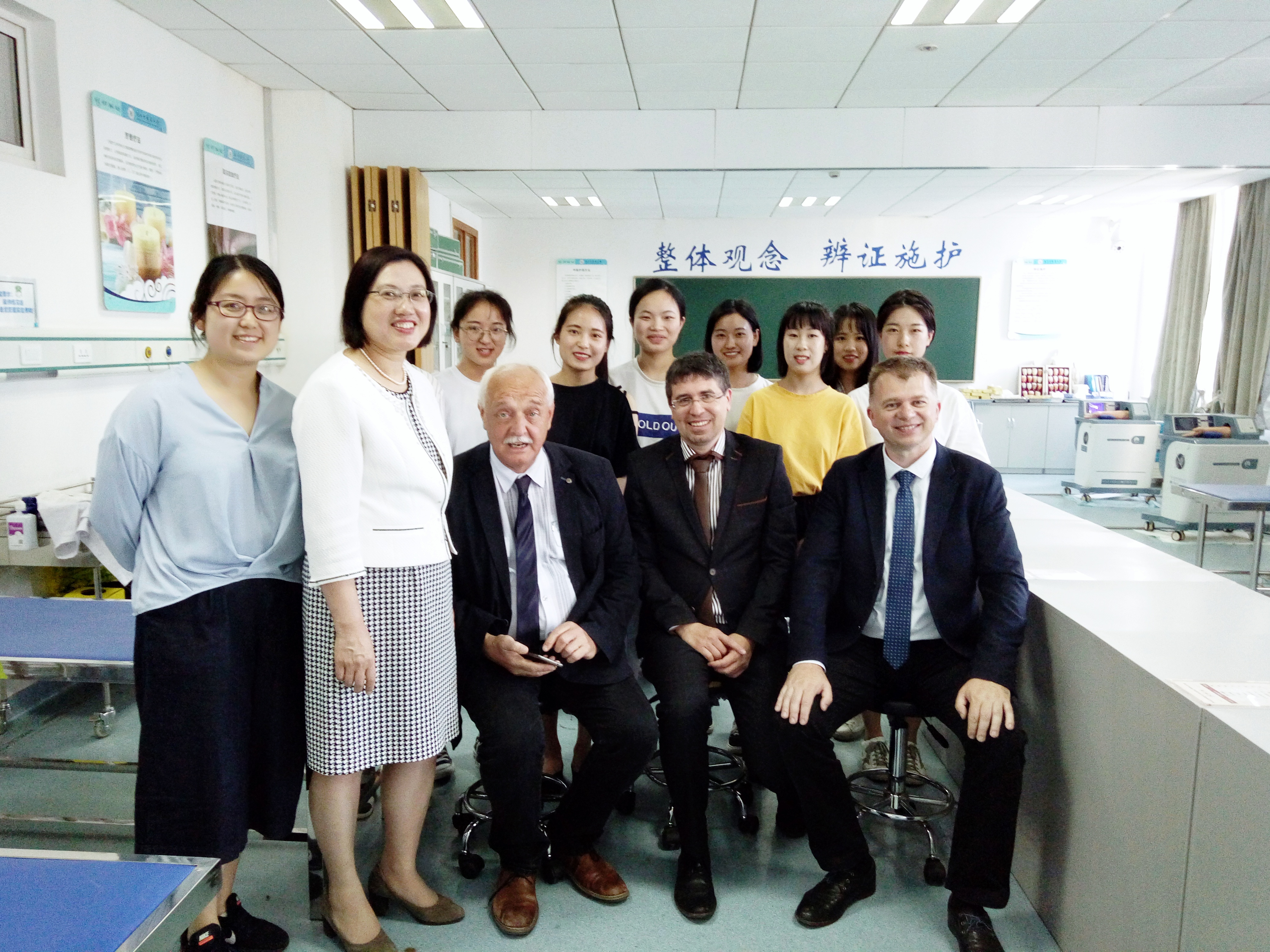 沈翠珍副院长代表学院欢迎捷克帕拉茨基大学各位教授的来访,并用英语介绍了学院的概况。捷方代表对如何利用中西医结合培养护理人才有浓厚的兴趣,咨询了中医护理的相关概念和操作。 双方就可以开展的学生交流和教师科研等方面开展了交流和讨论,基本达成在学生短期交流和老年护理、居家护理和临终关怀等方面有合作的空间,将进一步沟通,促成合作的落地和开展。