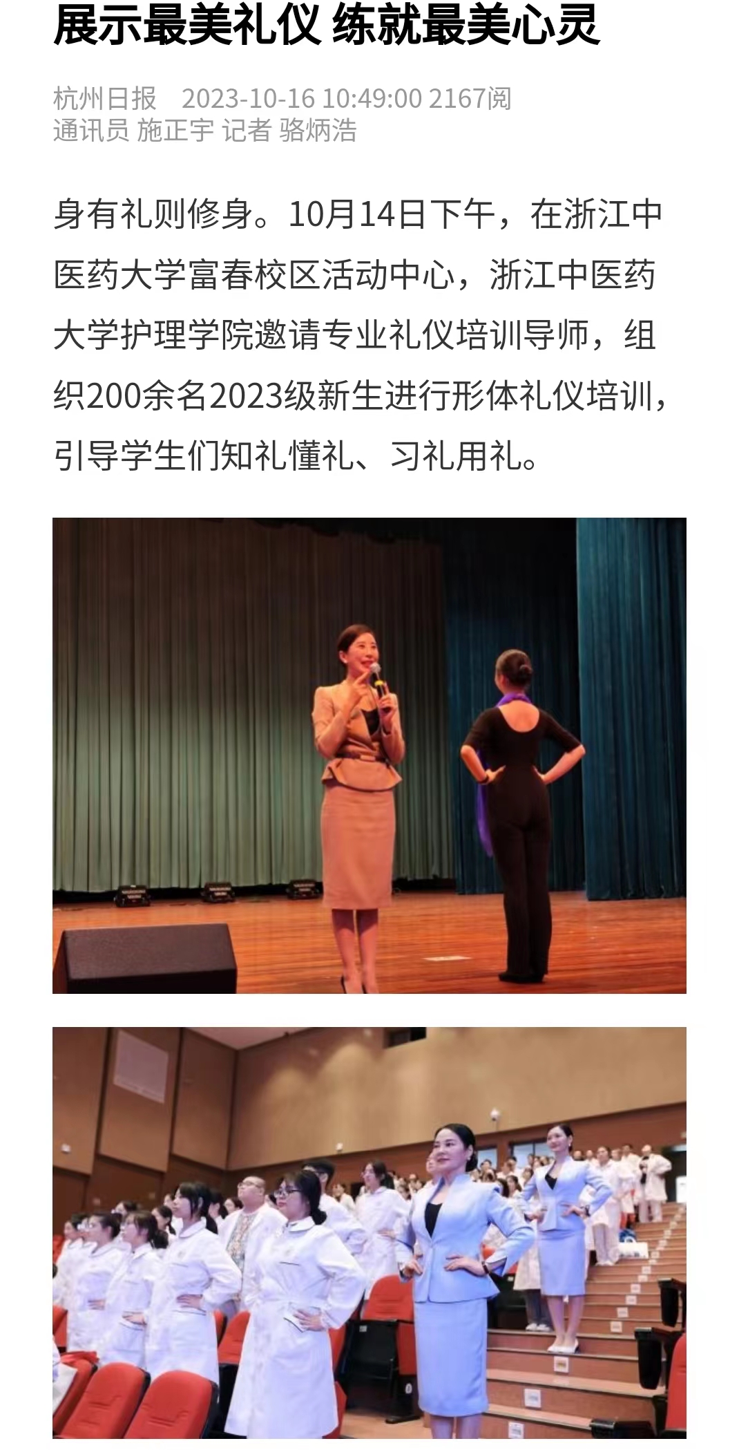 身有礼则修身。10月14日下午,在beat365英国官网网站富春校区活动中心,beat365英国官网网站邀请专业礼仪培训导师,组织200余名2023级新生进行形体礼仪培训,引导学生们知礼懂礼、习礼用礼。