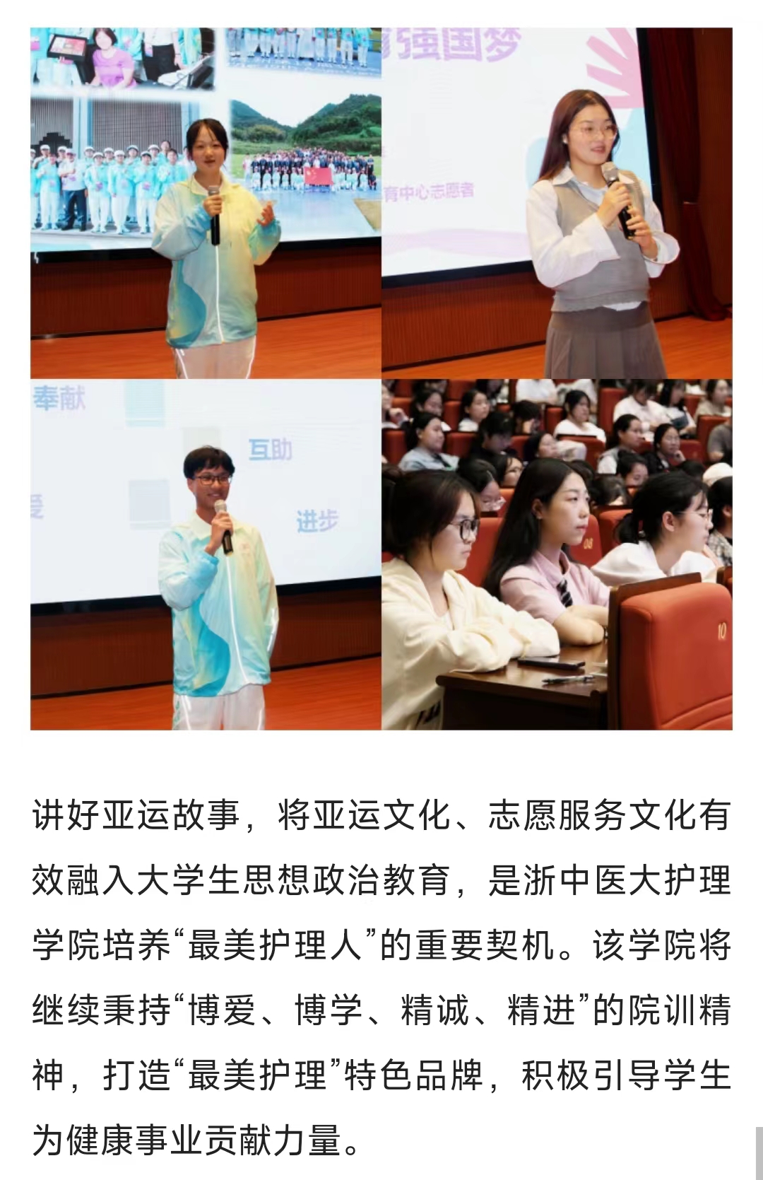 近日,beat365英国官网网站面向全体2023级新生开展了“亚运有我 青荷绽放”专题教育交流会。该学院参加杭州第19届亚运会的志愿者领队老师和学生志愿者们,用服务亚运会的经历,与现场学生交流互动,激发青年学子发扬志愿服务精神。