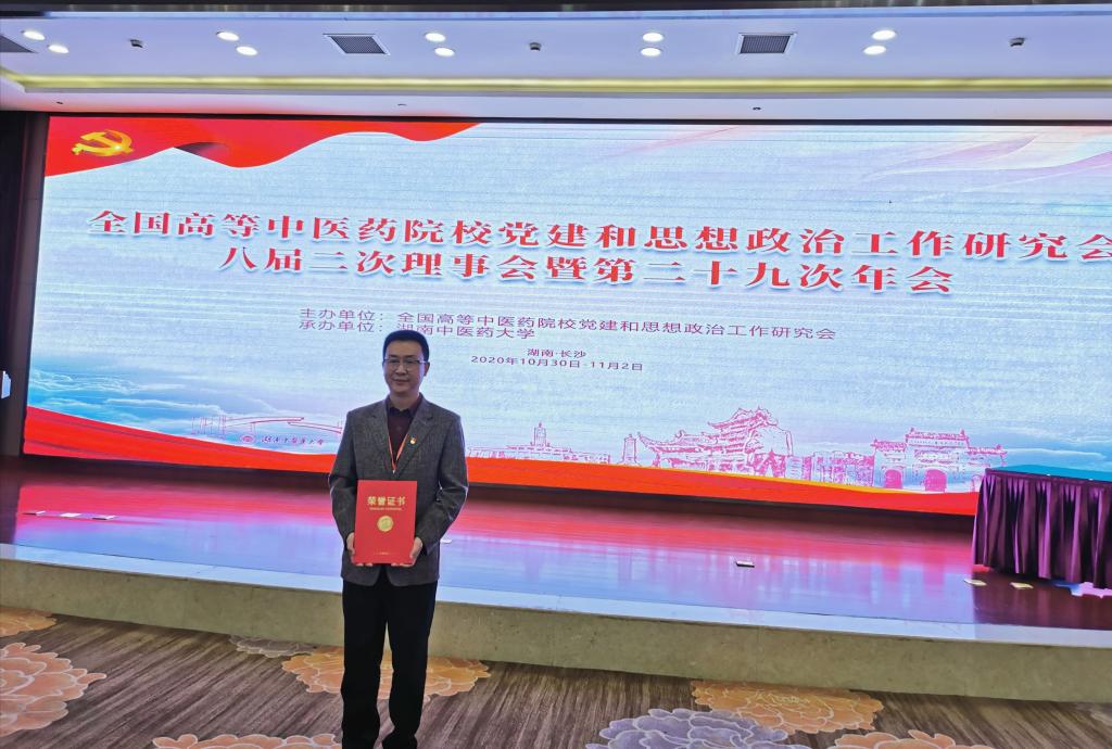 11月1日,全国高等中医药院校党建和思想政治工作研究会第29次年会在湖南长沙举行。本次会议由湖南中医药大学承办。本次会议表彰了优秀党务工作者,beat365党总支书记方年根教授荣获优秀党务工作者称号。