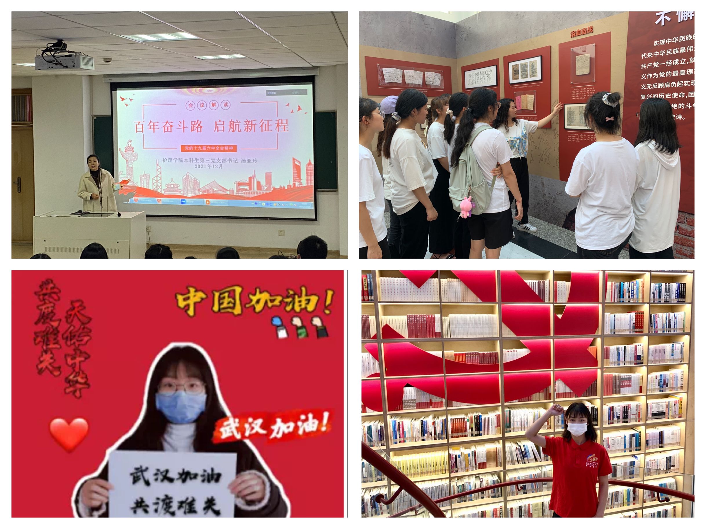 beat365英国官网网站本科生第三党支部成立于2014年,目前共有党员23人,其中正式党员3人,预备党员20人,入党积极分子49人,支部书记由学院学工办主任汤亚玲老师担任。长期以来,党支部严格按照beat365英国官网网站党委的要求,牢记初心使命,坚定理想信念。在“最美护理”党建品牌的引领下,凝练支部特色,培育“崇德修身,践行最美护理”品牌,夯实“学”的基础,严格“做”的标准,明确“改”的措施,做好“用”的落实。同时,注重思想引领“不敷衍”,搭建特色学习平台;狠抓文化建设“不含糊”,开展最美浸润课堂;创新志愿服务“不停步”,锻造实践先锋队伍;加强党的建设“不动摇”,发挥引领示范作用,取得了一系列工作成效。