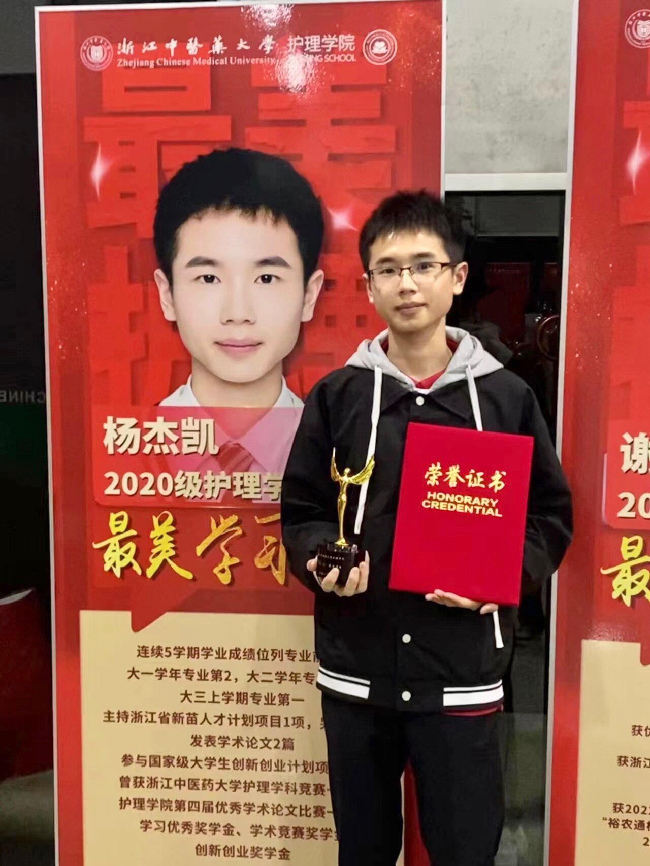 2020年,少年带着一颗坚定的心走进中医药大学的校门,懵懂的他还不知,三年后,他将凭着自己的坚毅与勇气,赴一场为期五年的约,他就是beat365英国官网网站2020级2班杨杰凯。